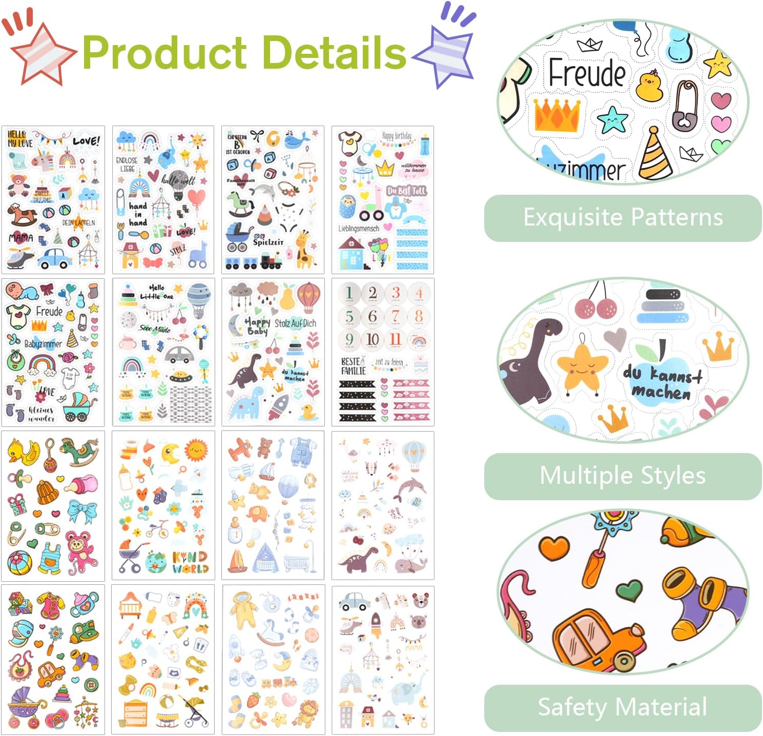 Dieses Sticker-Set eignet sich nicht nur für Babyfotoalben, sondern auch für Einladungskarten, Tauffotoalben, Babyflaschen und Tagebücher. Mit umfangreichen Mustern können Sie die wichtigen Momente Ihres Kindes festhalten und Ihrem Scrapbooking-Projekt Persönlichkeit verleihen.