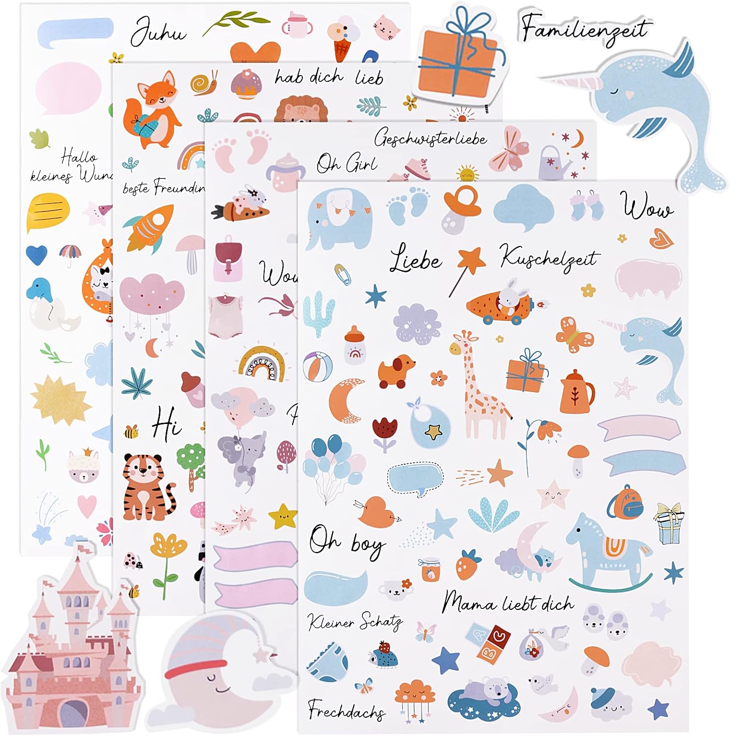A4 Babyparty Aufkleber-Set mit 330+ Motiven für Scrapbooking und Geschenke