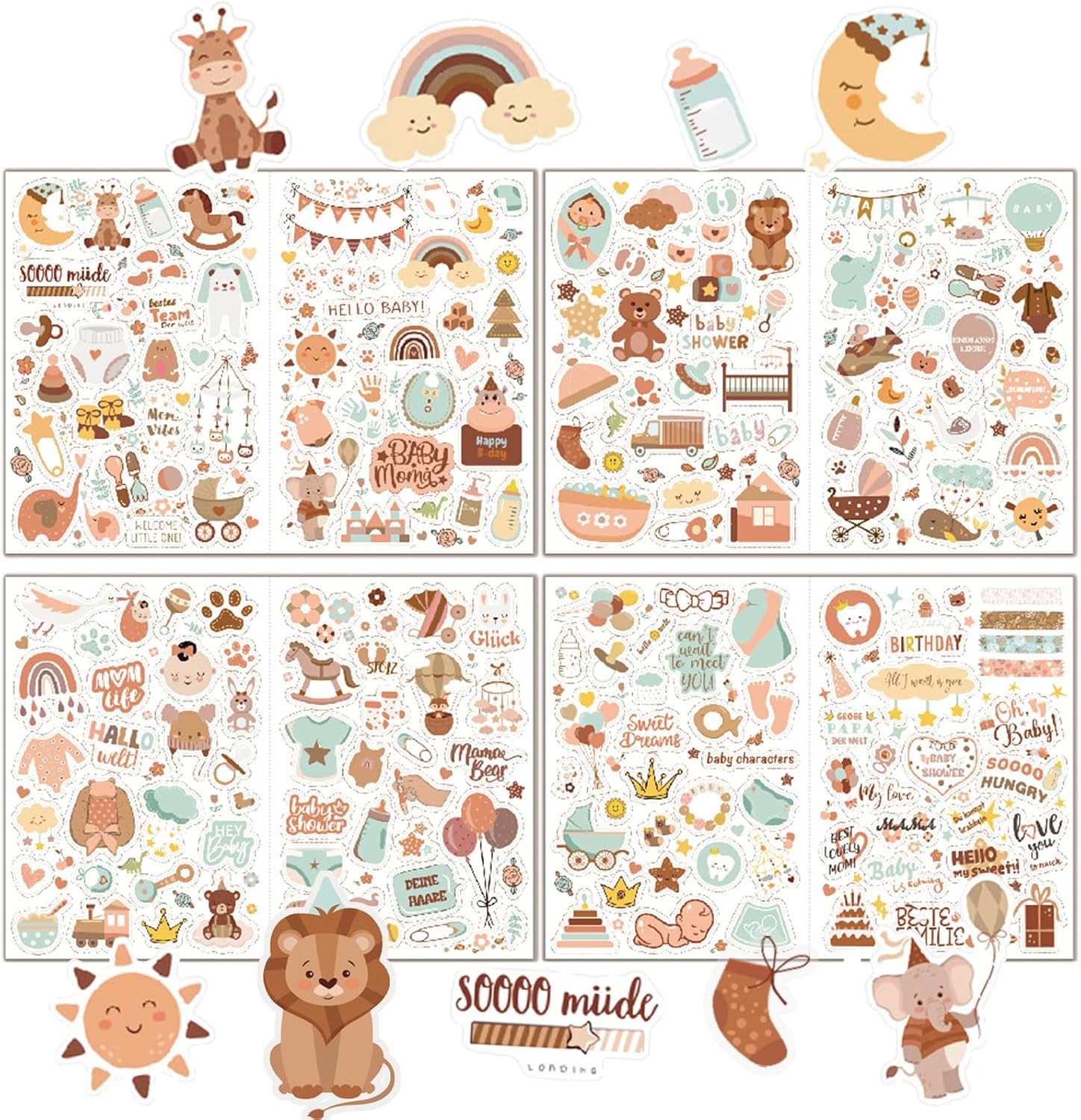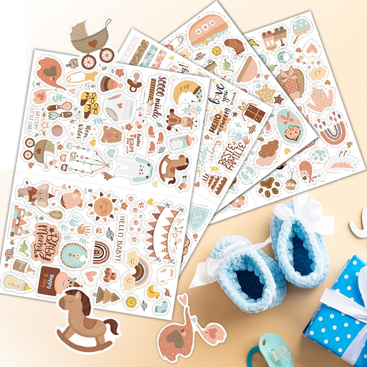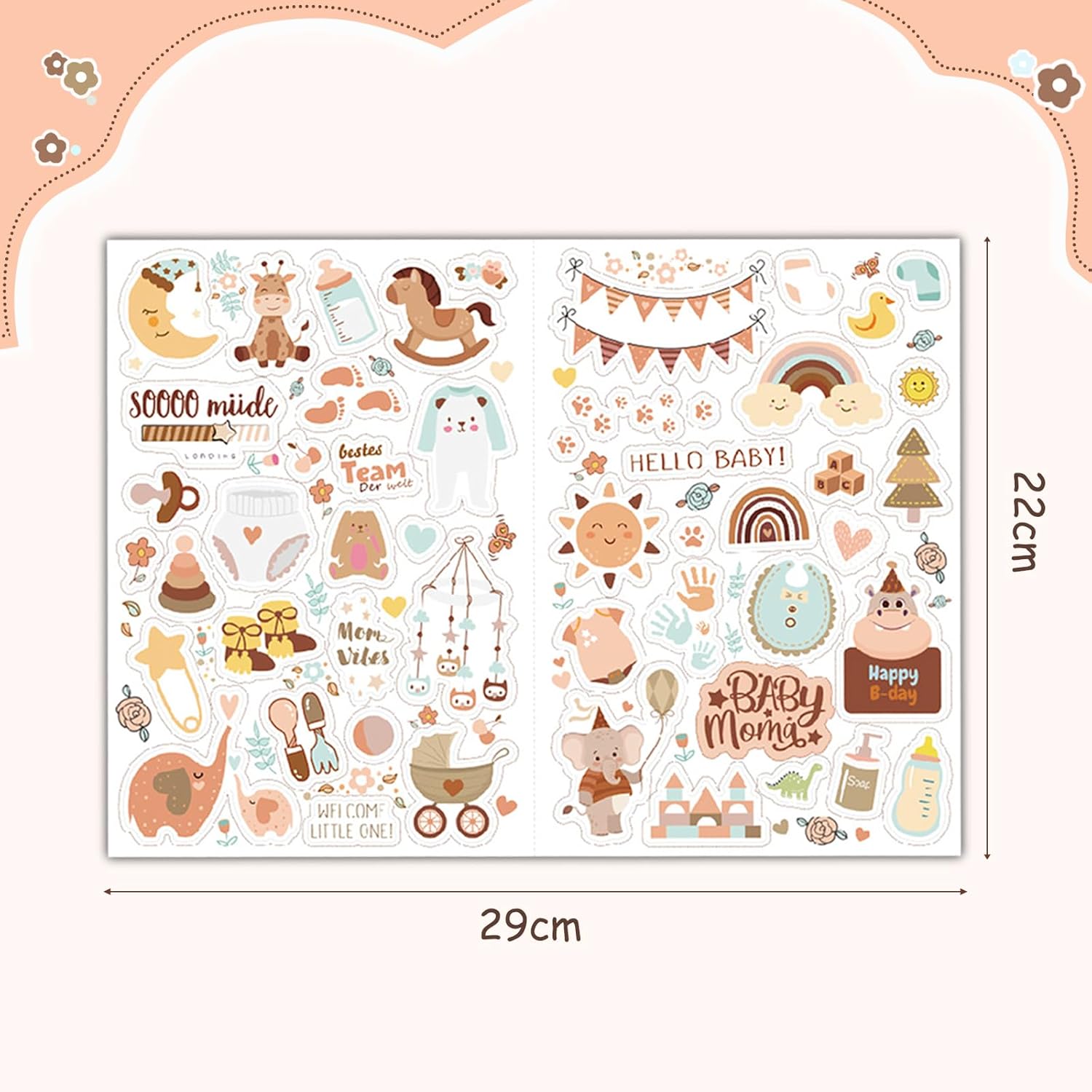 Altdeovk Babyalbum Sticker Set, 204 Stücke A4, Baby Scrapbooking Aufkleber