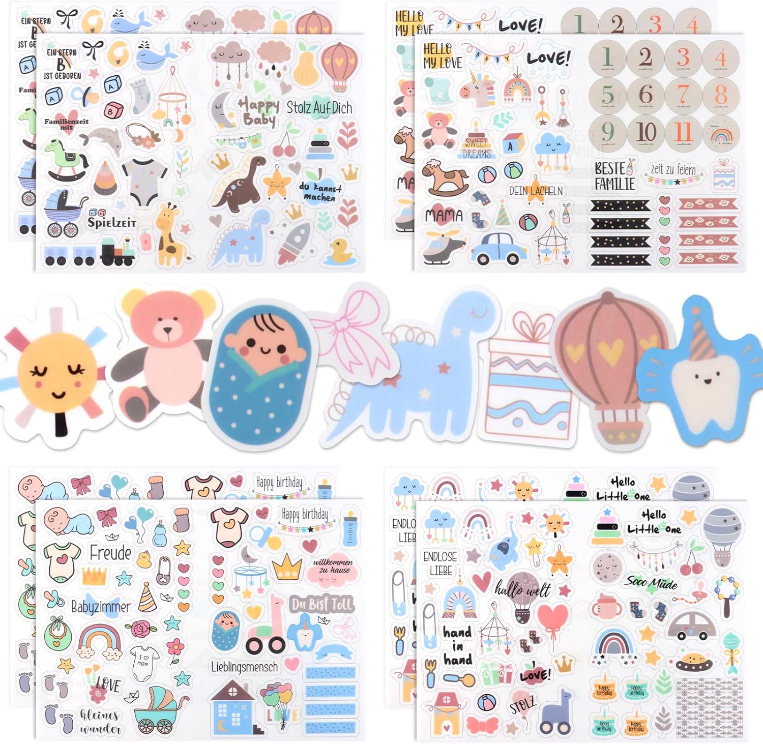 Baby Sticker-Set mit 424 Motiven, Ideal für Fotoalben und Geschenke