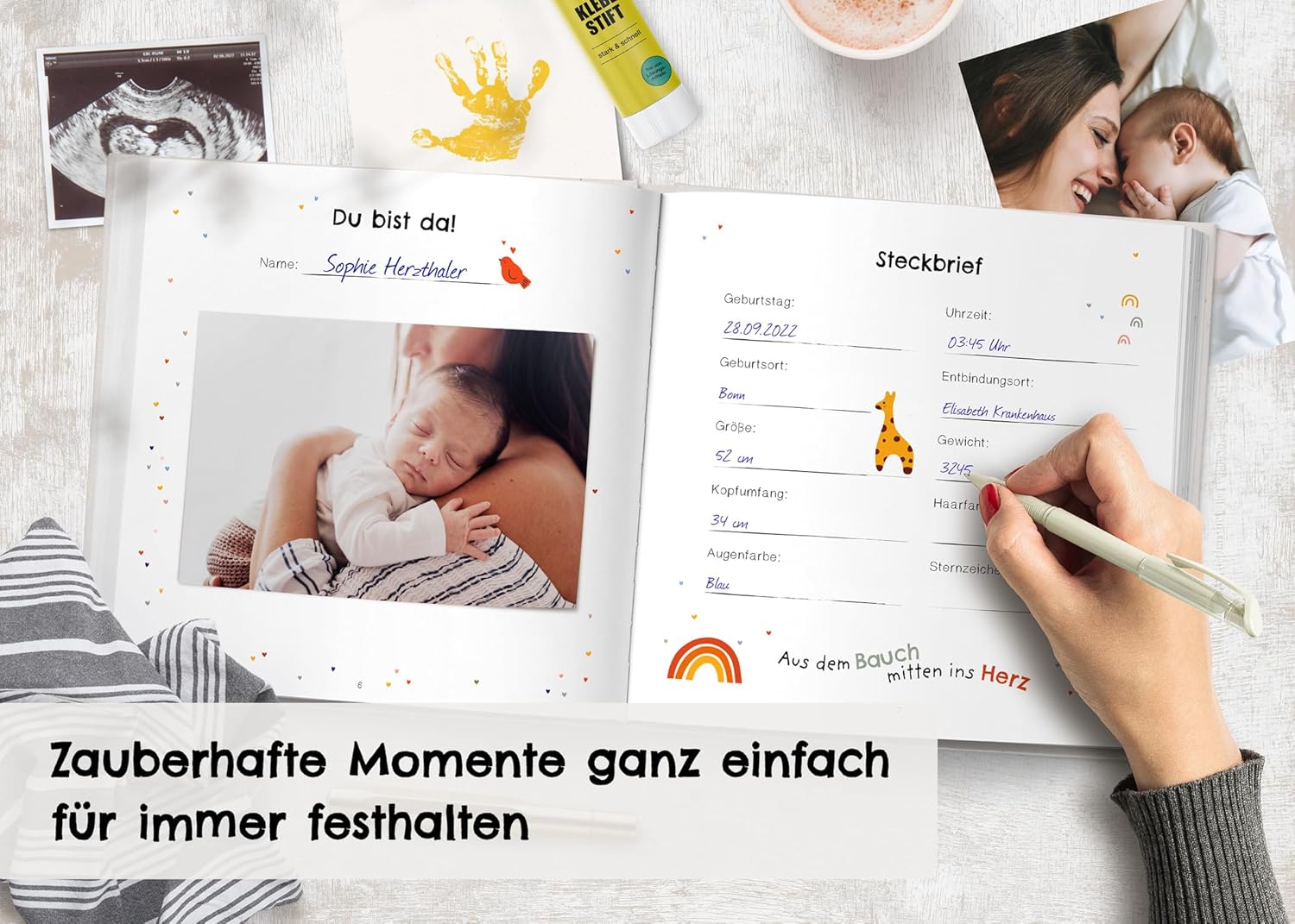 Gönnen Sie sich selbst oder Ihren Lieben dieses besondere Andenken, das die Magie des ersten Jahres des Babys einfängt und für immer bewahrt.