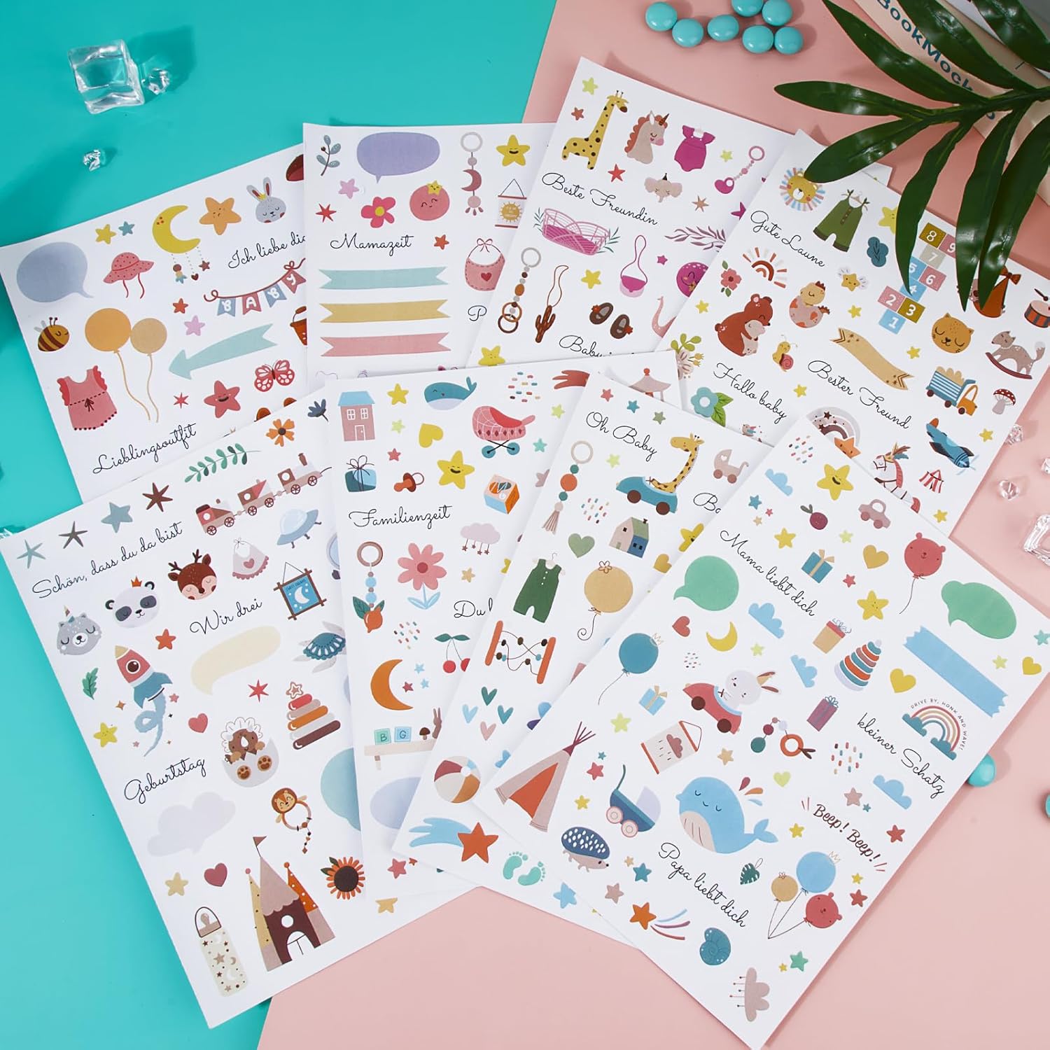BETESSIN Babyalbum Sticker-Set - 440 Aufkleber für kreative Gestaltung