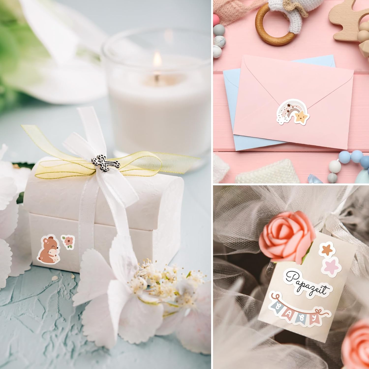 Neben der Dekoration von Fotoalben und Fotorahmen eignen sich die Aufkleber auch hervorragend zum Gestalten von Einladungskarten, Scrapbooking, Geschenkverpackungen, Kalendern, Bullet Journals und vielem mehr. Sie sind eine ausgezeichnete Wahl für Babypartys, Babyshowers, Geburten und Geburtstagsfeiern.