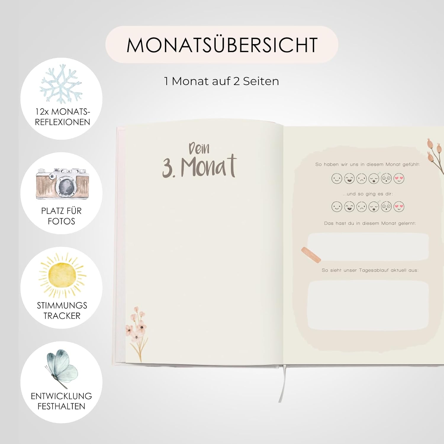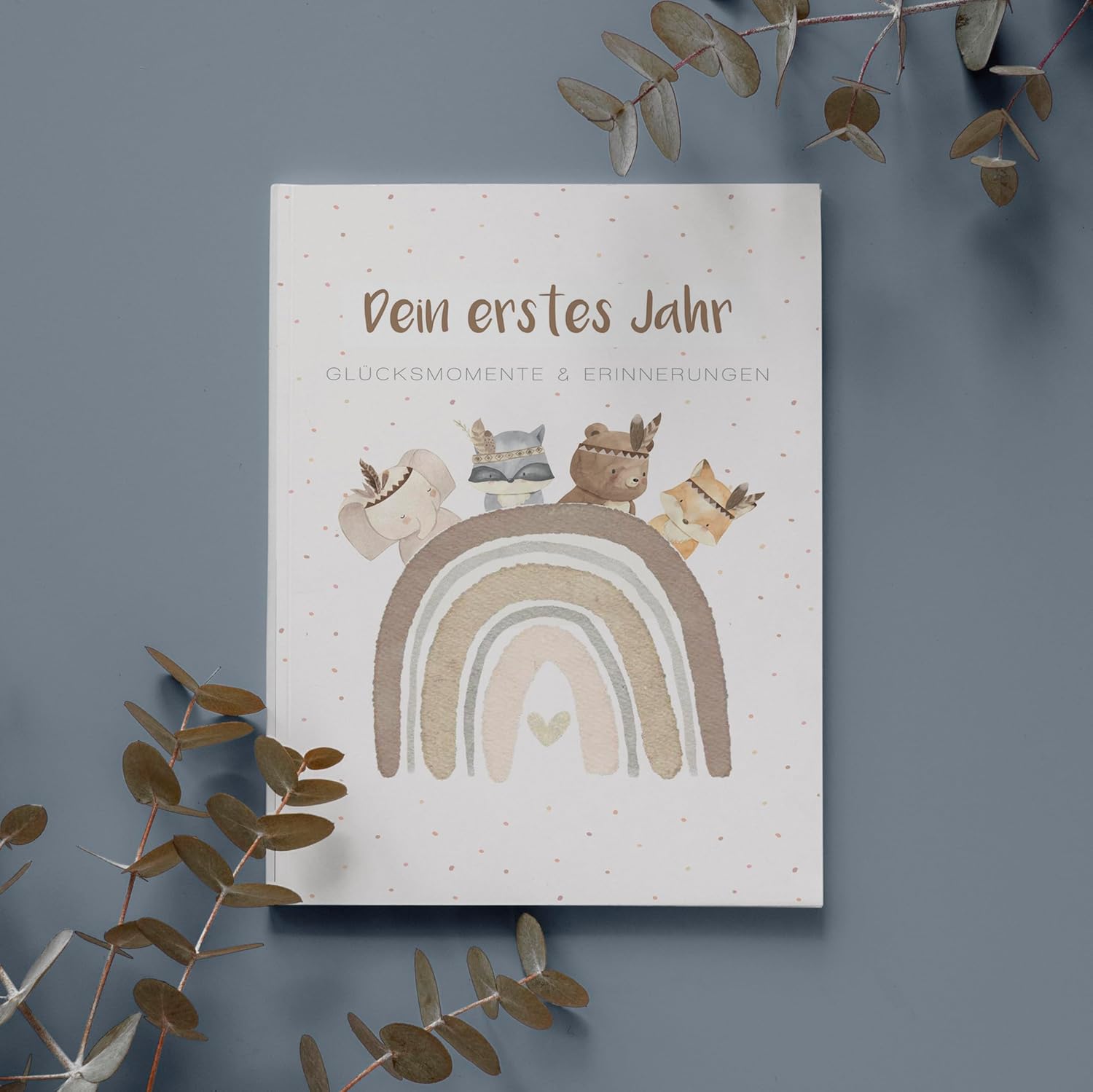 Das Cozy Racoon Babyalbum 'Mein erstes LebensJahr' im Boho Tiere Design ist das perfekte Geschenk für werdende Eltern. Dieses liebevoll gestaltete Tagebuch bietet viel Platz für alle Ihre schönen Geschichten und Momente. Jeder Monat im ersten Jahr kann auf einer ganzen Seite festgehalten werden, mit zusätzlichen Seiten für besondere Meilensteine oder Festlichkeiten.