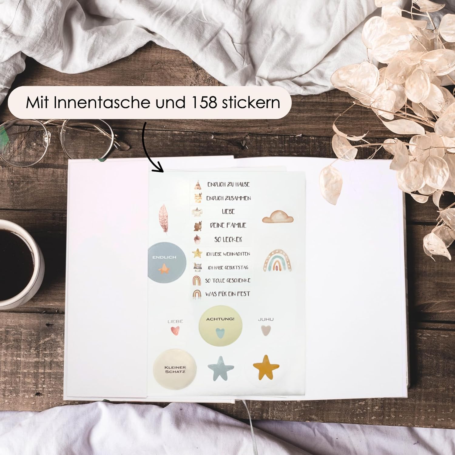 Das einzigartige Set enthält 158 Sticker, ideal zum liebevollen Verzieren und Dekorieren Ihrer Erinnerungseinträge. Hergestellt aus FSC-zertifiziertem Papier aus nachhaltigen Quellen, legt Cozy Racoon den Fokus auf höchste Qualität. Das robuste und langlebige Format von 17,4 x 24,4 cm sorgt dafür, dass Ihre Erinnerungen an die Schwangerschaft immer schön und ansehnlich bleiben.