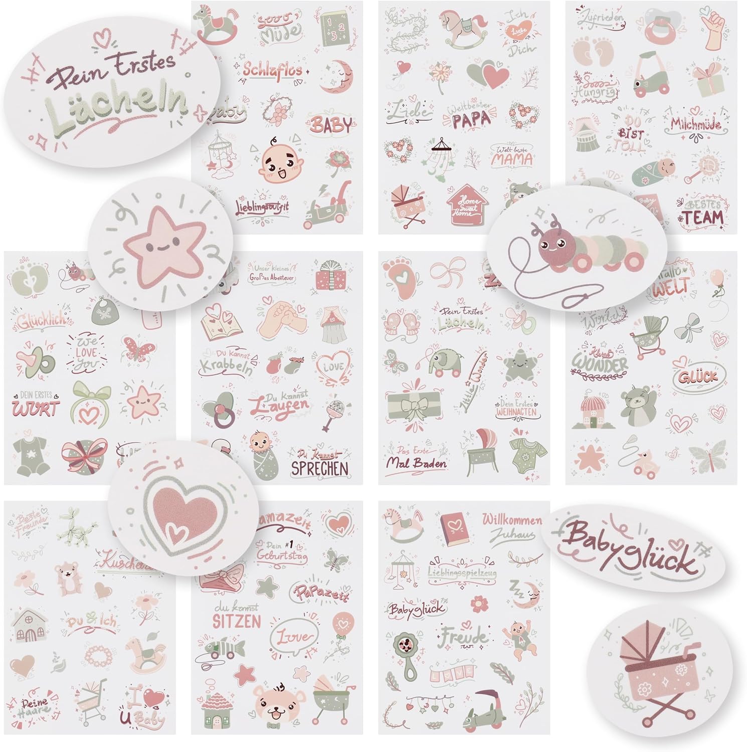 CraftWerk Baby Sticker Set – 165 Deko Aufkleber für unvergessliche Momente