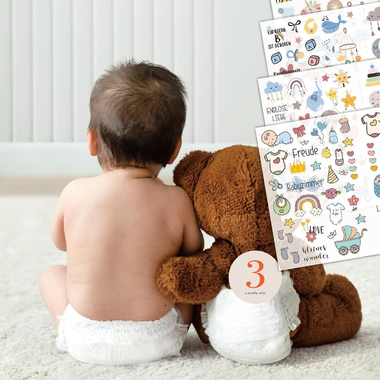 Für werdende oder frischgebackene Eltern sind diese Aufkleber ein absolutes Muss. Sie bieten eine kreative und personalisierte Möglichkeit, die wertvollen Momente und Meilensteine im Leben Ihres Kindes festzuhalten. Unabhängig davon, ob Sie ein Scrapbooking-Profi oder ein Anfänger sind, werden Sie die Vielseitigkeit und Einfachheit dieser Aufkleber zu schätzen wissen. Mit ihrer Hilfe können Sie ein einzigartiges und liebevolles Andenken gestalten, das Ihr Kind in den kommenden Jahren schätzen wird. Die Aufkleber sind auch eine tolle Ergänzung für Baby-Partys und können zur Dekoration oder als Geschenk für die Gäste verwendet werden.