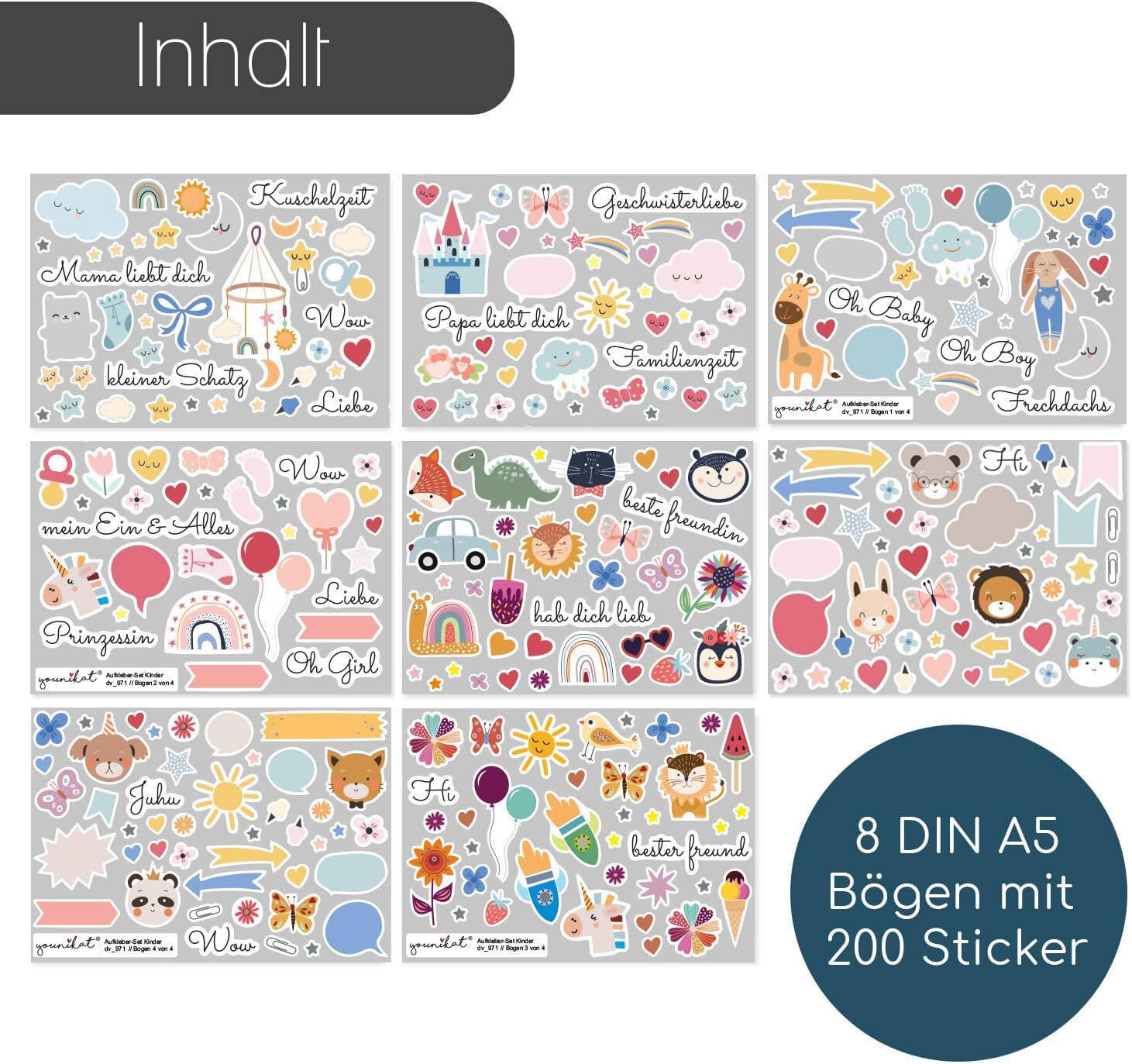 DIY Scrapbooking-Aufkleber-Set für Kinder und Fotoalben | Über 200 Sticker
