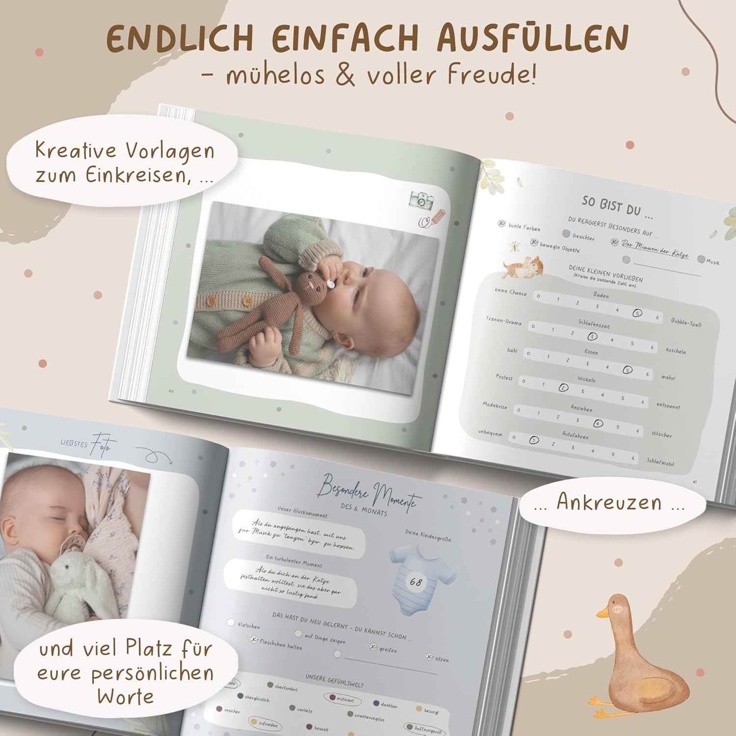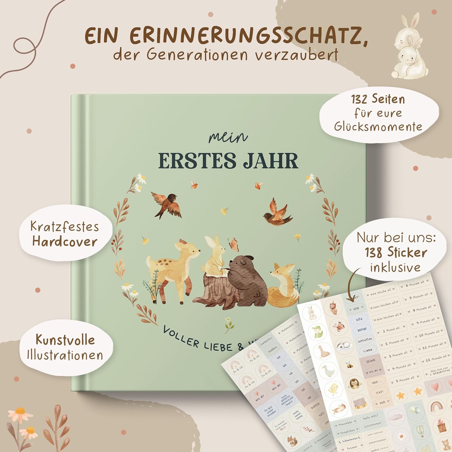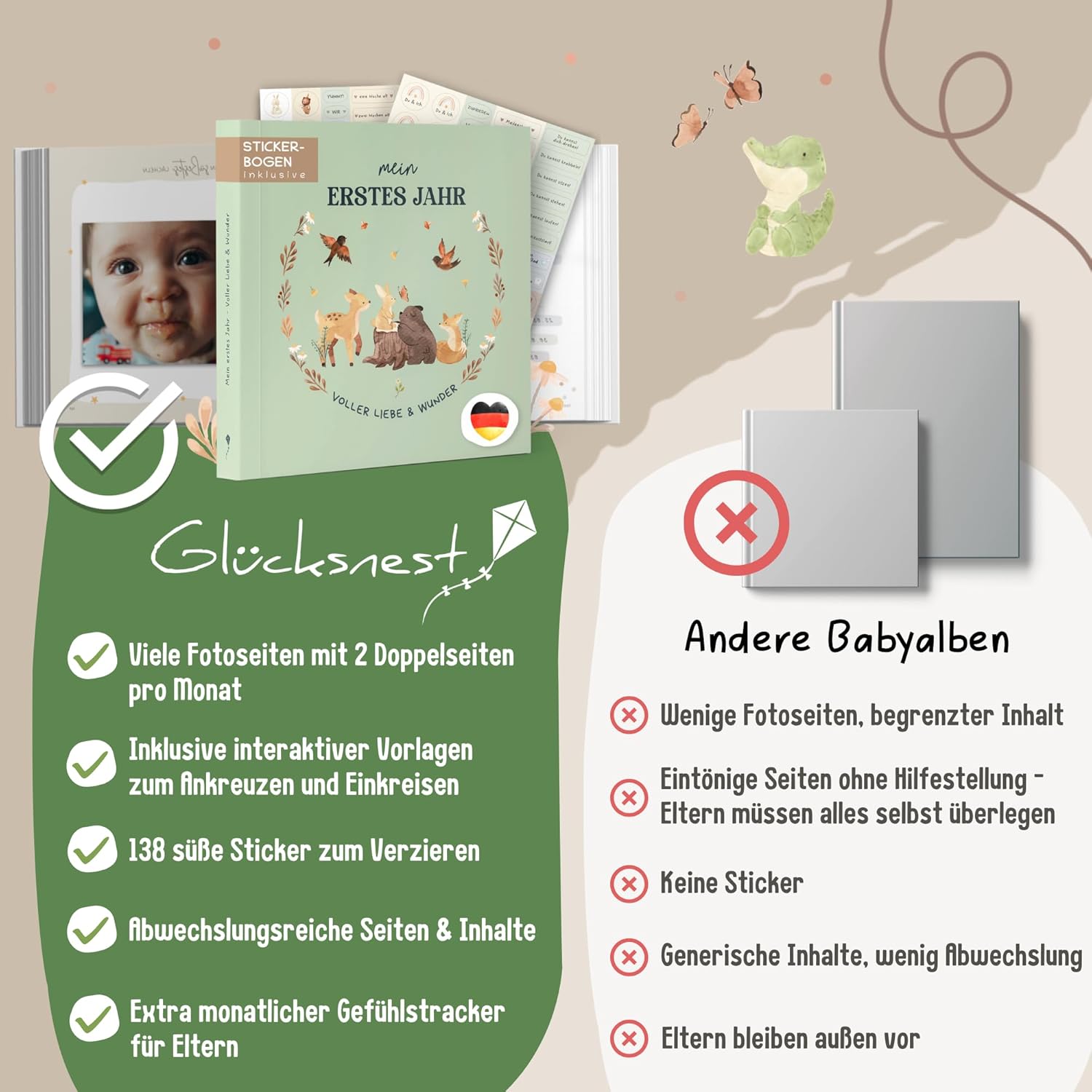 Das Glücksnest Babyalbum Mein erstes Jahr ist mehr als nur ein Erinnerungsbuch, es ist ein Schatz, der die kostbaren Momente und Meilensteine des ersten Lebensjahres Ihres Babys festhält. Auf 132 liebevoll gestalteten Seiten wird das erste Jahr Ihres Kindes zu einer bleibenden Erinnerung.