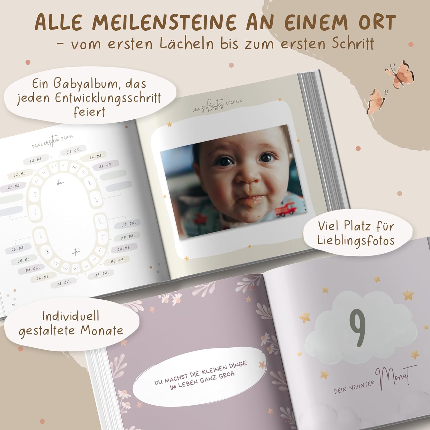 Das Babyalbum Mein erstes Jahr von Glücksnest ist das perfekte Geschenk zur Geburt, zur Babyshowerparty oder für werdende Mütter. Es ist ein zauberhaftes Präsent, das Freude und Erinnerungen fürs Leben schenkt.