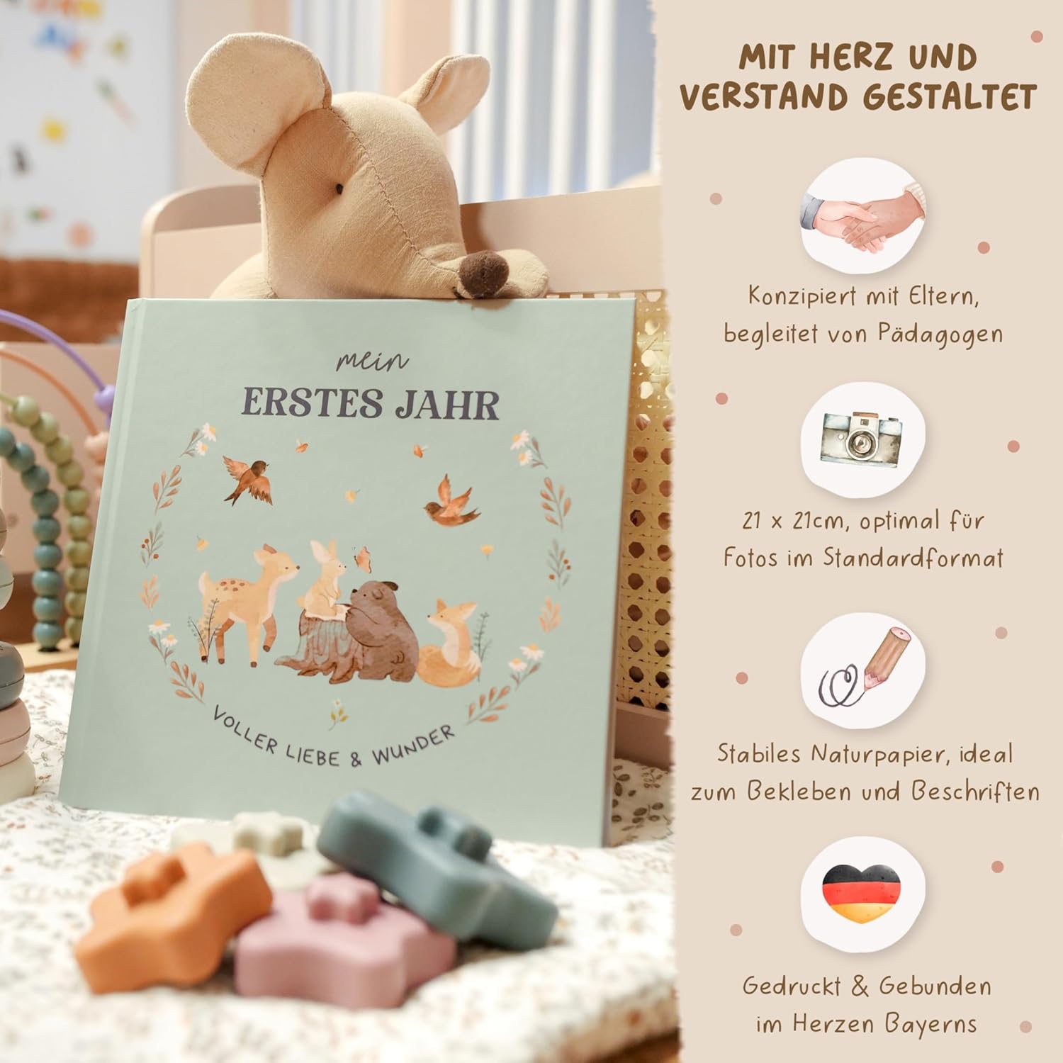 Das erste Lebensjahr eines Kindes ist voller besonderer Momente und Meilensteine. Es ist eine Zeit des Wachstums und der Veränderung, sowohl für das Baby als auch für die Eltern. Ein Babyalbum ist eine wunderbare Möglichkeit, diese besonderen Momente festzuhalten und für immer zu bewahren. Unser Glücksnest Babyalbum Mein erstes Jahr bietet Ihnen eine einzigartige und kreative Möglichkeit, diese Erinnerungen zu bewahren. Mit seinen spielerischen Vorlagen und den liebevoll gestalteten Stickern können Sie die Entwicklung Ihres Kindes auf eine Art und Weise festhalten, die sowohl persönlich als auch spaßig ist. Darüber hinaus ist das Album aus hochwertigem Material gefertigt, so dass es über Jahre hinweg erhalten bleibt. Schenken Sie sich selbst oder Ihren Lieben dieses besondere Album und halten Sie die wertvollen Momente des ersten Lebensjahres für immer fest.