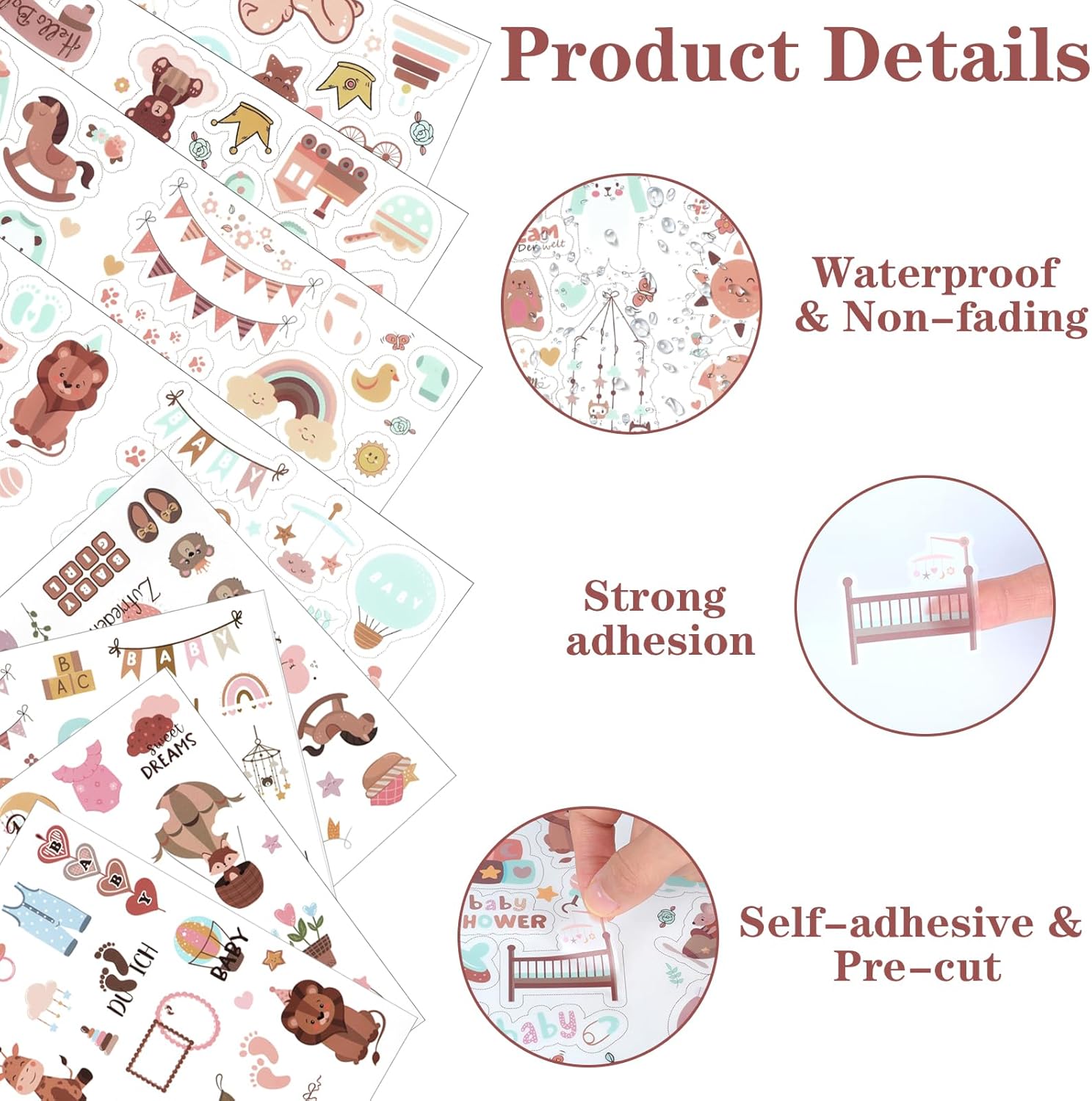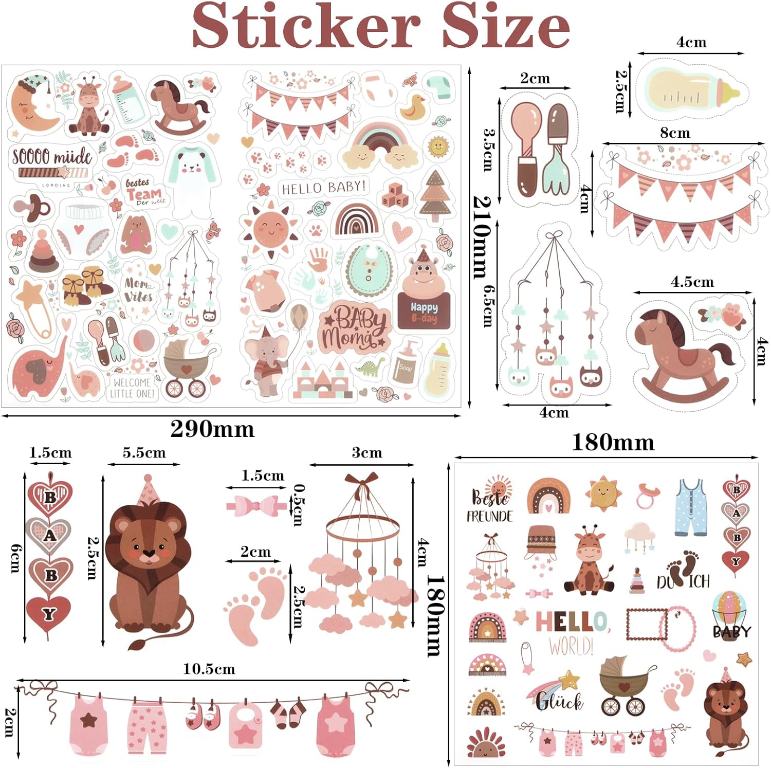 Dieses Set ist ein perfektes Geschenk für Kinder und kann als Dekoration für Babygeburtstage oder Willkommenspartys verwendet werden. Machen Sie jede Neugeborenenfeier mit diesen süßen und freudigen Aufklebern einzigartig.