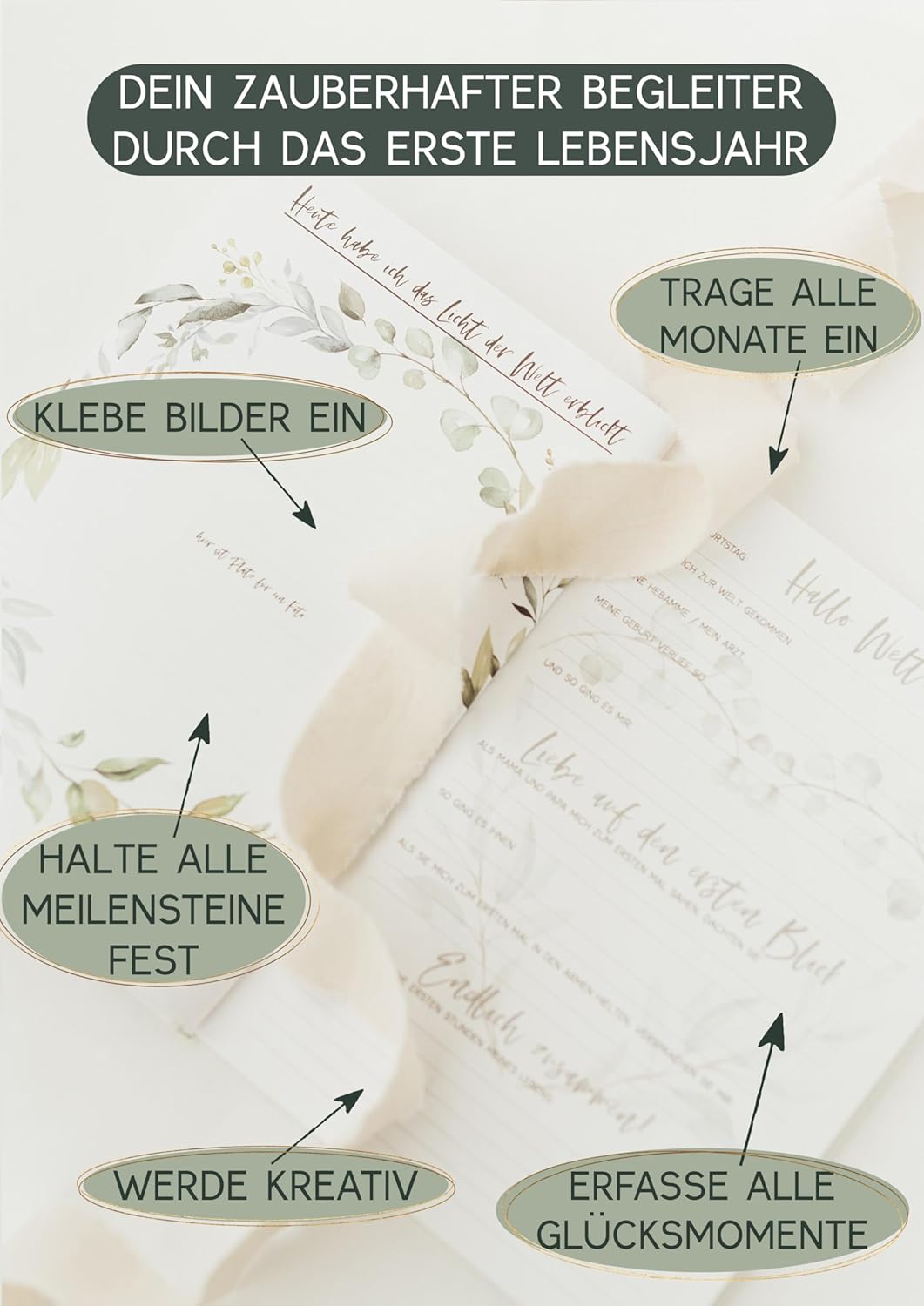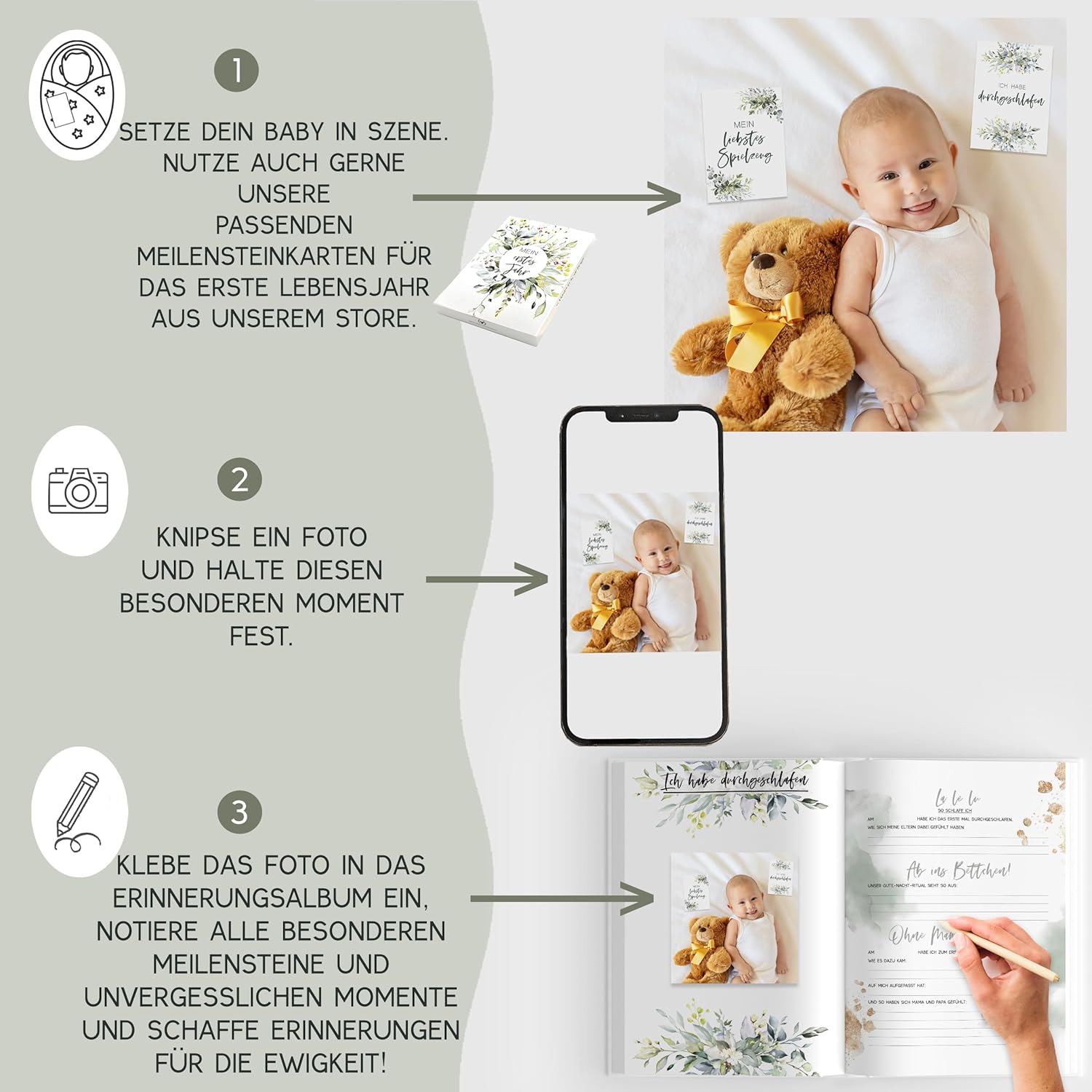 HIMMEL.HERZ.PAPIER® Mein erstes Jahr Babyalbum - Erinnerungsbuch und Baby Tagebuch