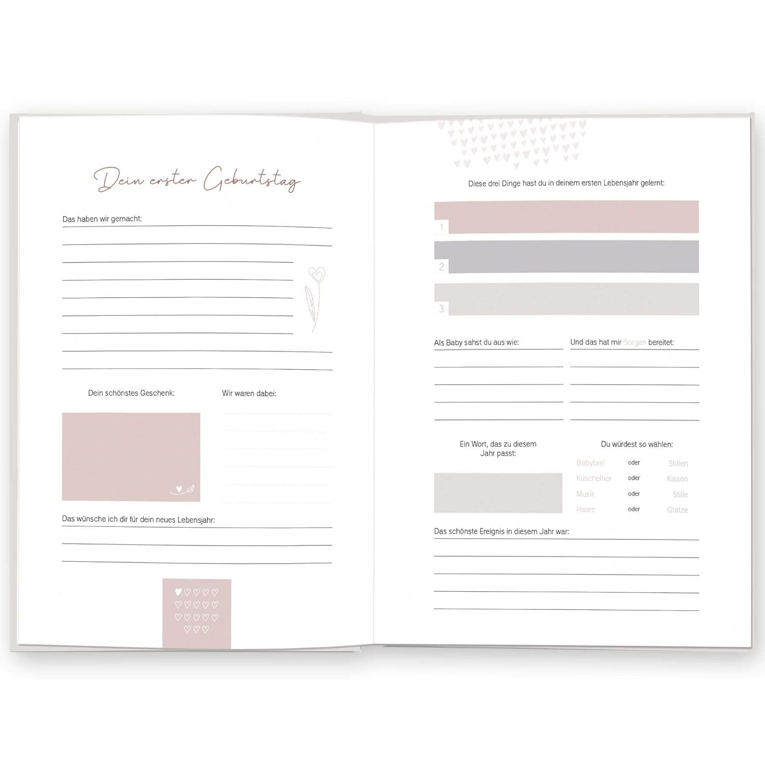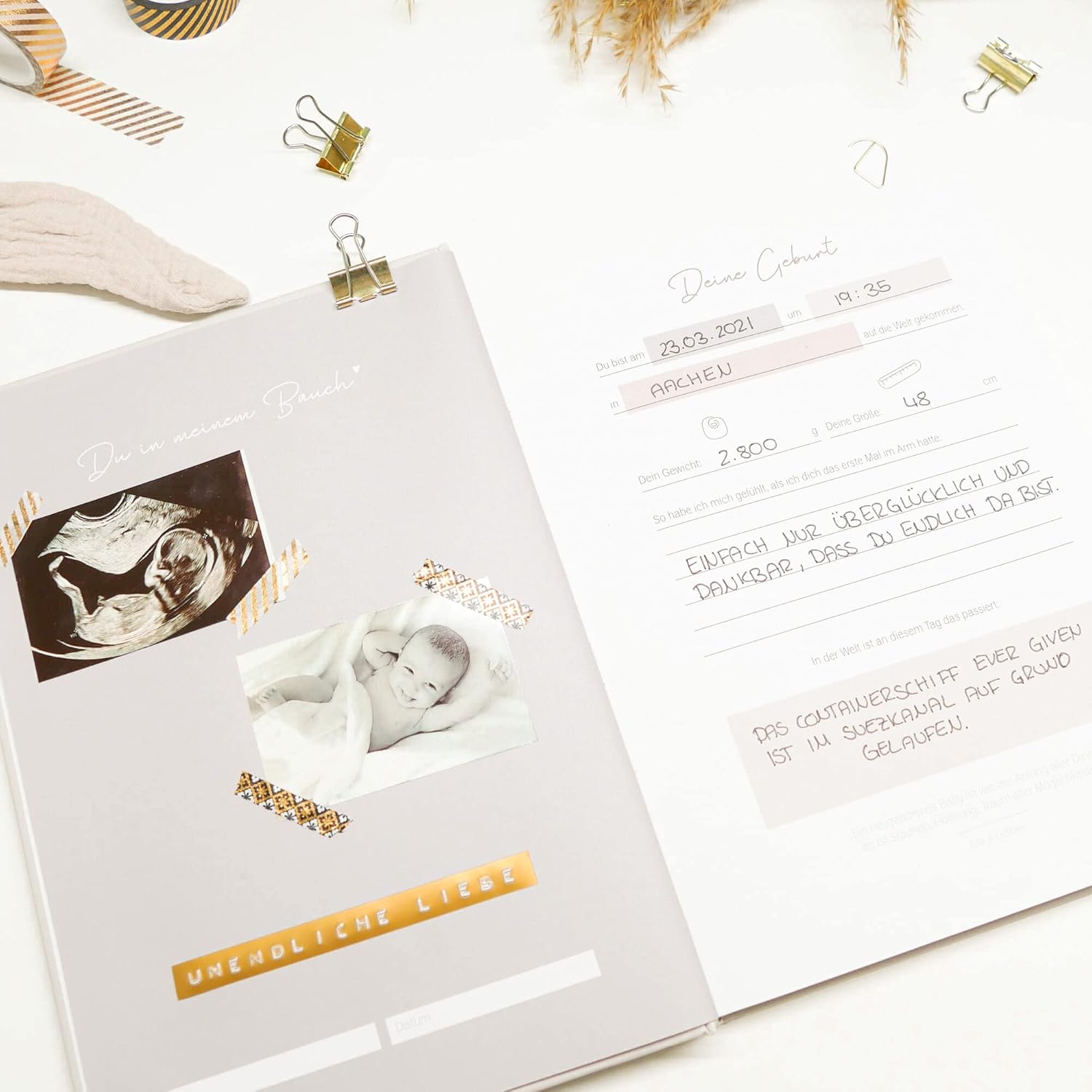 Mit diesem Babybuch können Sie schöne Kindheitserinnerungen auf eine kreative und einzigartige Weise festhalten und ein wundervolles Erinnerungsstück für die spätere Lebenszeit Ihres Kindes schaffen.