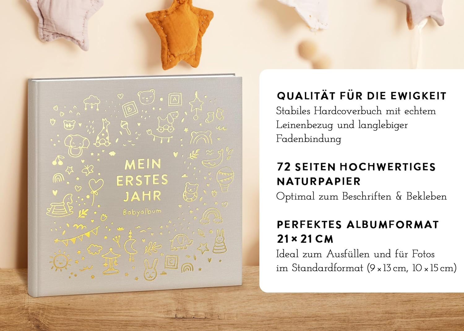 Produktinformationen "Mein erstes Jahr Babyalbum - Luxus Leinenbuch mit Goldprägung"