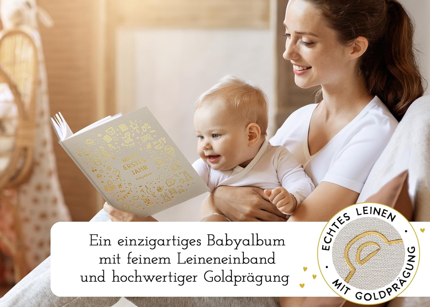 Mein erstes Jahr Babyalbum - Luxus Leinenbuch mit Goldprägung