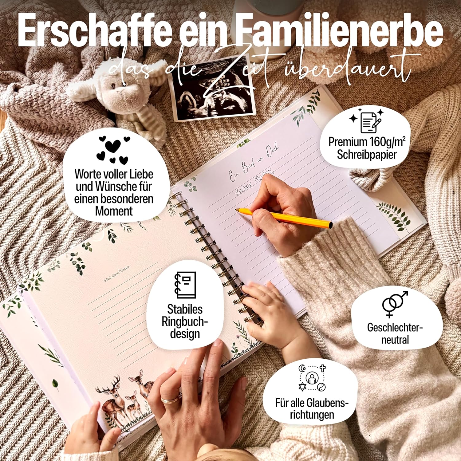 Außerdem enthält dieses Buch ein besonderes Kapitel für einen persönlichen Brief an Ihr Kind. Dadurch wird es zu einem ganz persönlichen Familienerbe, das nicht nur Erinnerungen bewahrt, sondern eines Tages als wertvolles Geschenk weitergegeben werden kann.