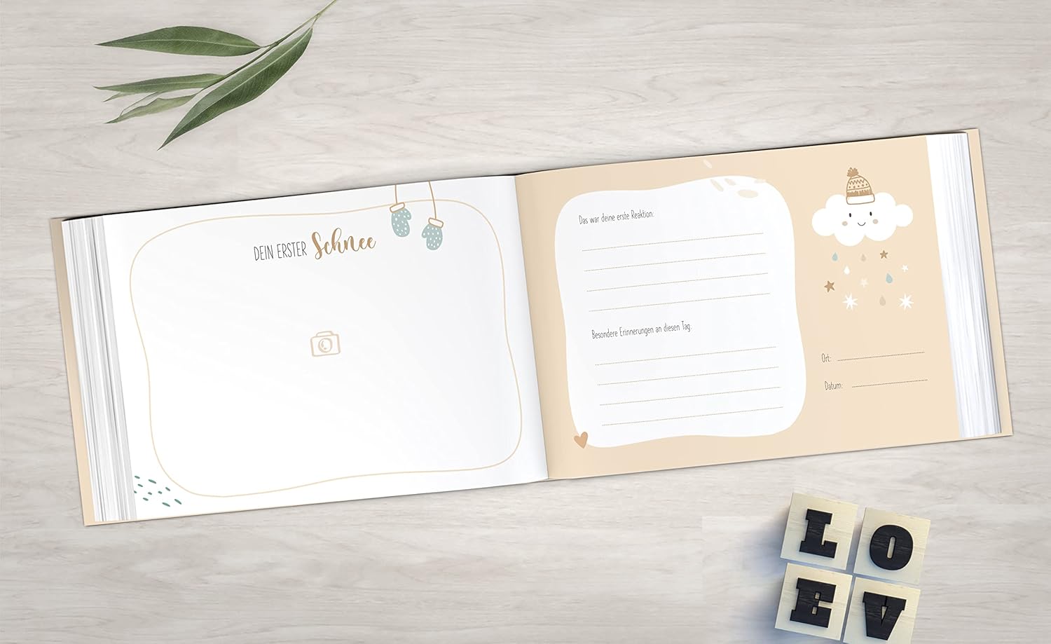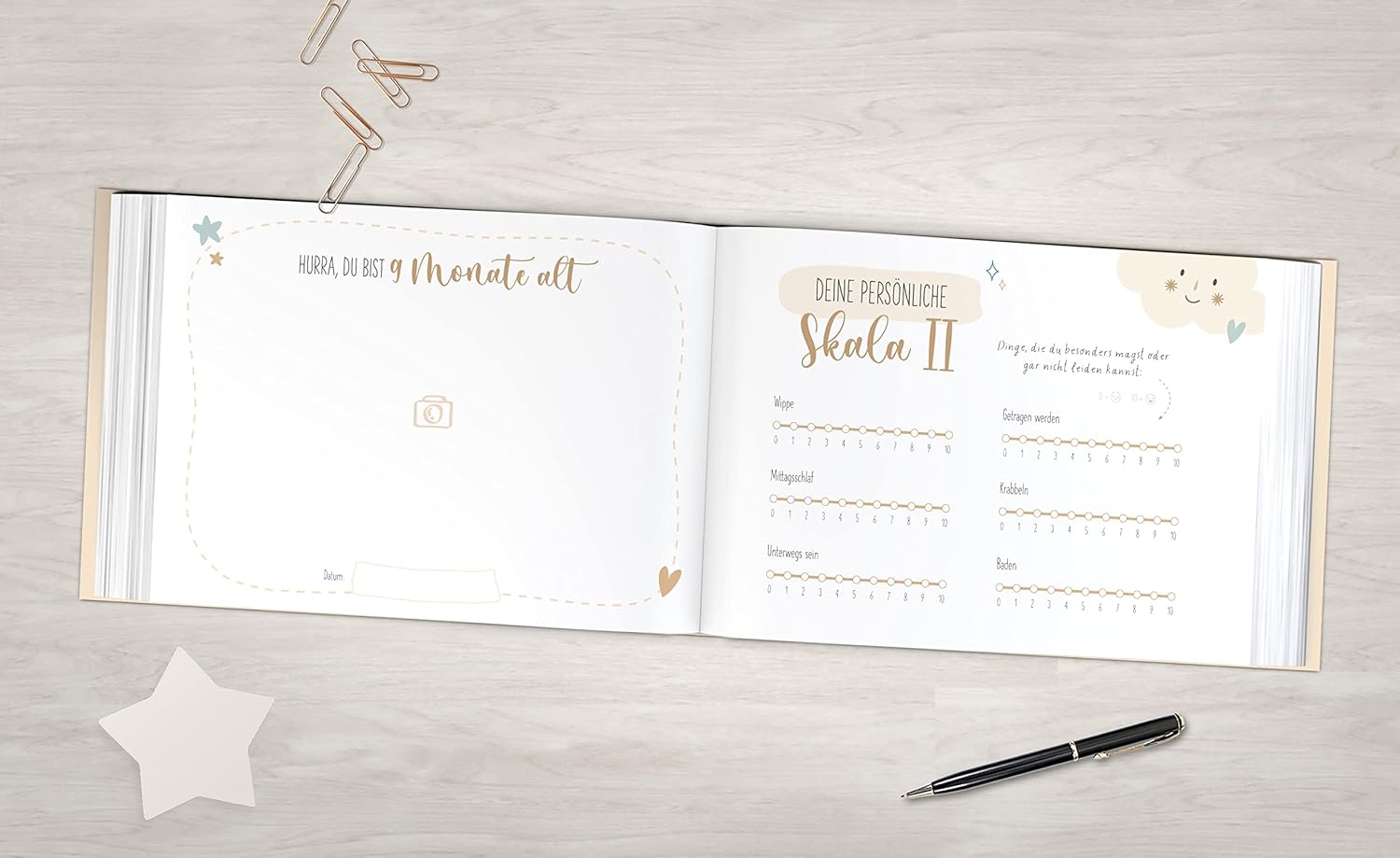Feiern Sie das erste Lebensjahr Ihres Babys mit unserem liebevoll illustrierten Babyalbum – Mein erstes Jahr. Dieses Album bietet 104 Seiten (52 Blätter) mit viel Platz um Erinnerungen, Fotos und wichtige Meilensteine festzuhalten. Von der Geburt bis zum ersten Geburtstag, Sie können jeden Moment festhalten und bewahren.