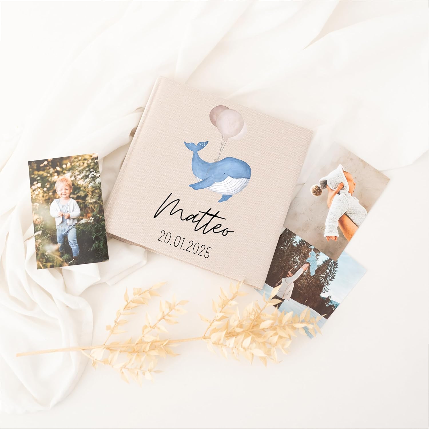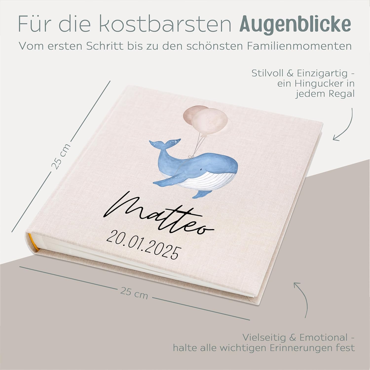 Erleben Sie die Magie der Erinnerungen mit dem personalisierten wunderwunsch Fotoalbum Einschulung. Dieses liebevoll gestaltete Album ist aus hochwertigem Leinen gefertigt und bietet einen besonderen Platz für unvergessliche Familienmomente. Mit dem wunderschönen Wal Motiv ist es ein stilvolles Erinnerungsstück, das Generationen überdauert.