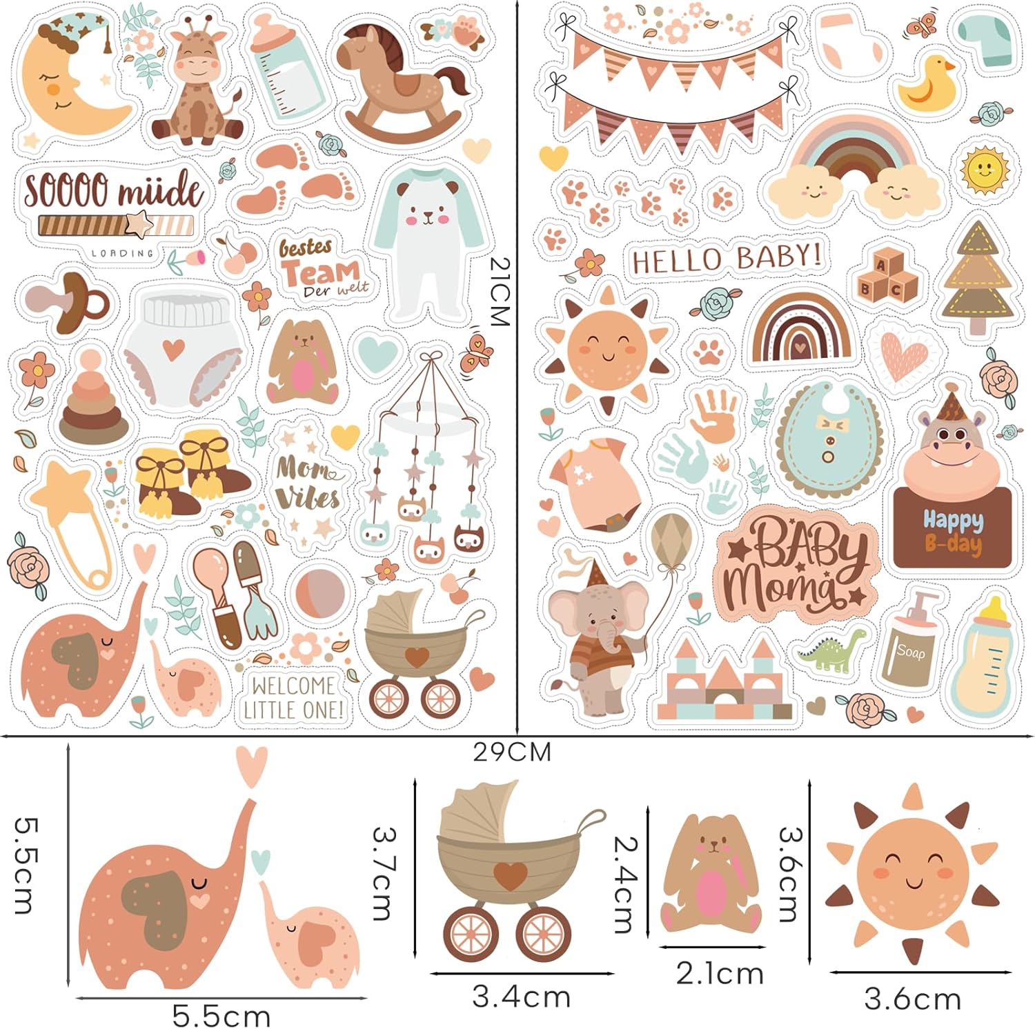 Mit diesen Stickern können Sie die Erinnerungen an die Schwangerschaft, die Babytage und besondere Anlässe wie Babypartys, Taufen, Kommunionen und Konfirmationen festhalten und auf kreative Weise darstellen.