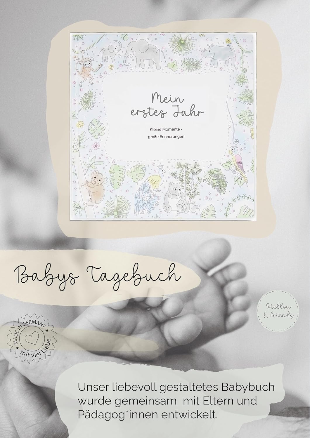 Das Stellou & friends Babybuch - Mein erstes Jahr ist ein einzigartiges Erinnerungsstück, das speziell als Geschenk zur Geburt für Mädchen und Jungen entworfen wurde. Gefüllt mit 74 liebevoll gestalteten Seiten bietet dieses Buch genügend Platz, um die schönsten Momente im ersten Lebensjahr Ihres Kindes festzuhalten.