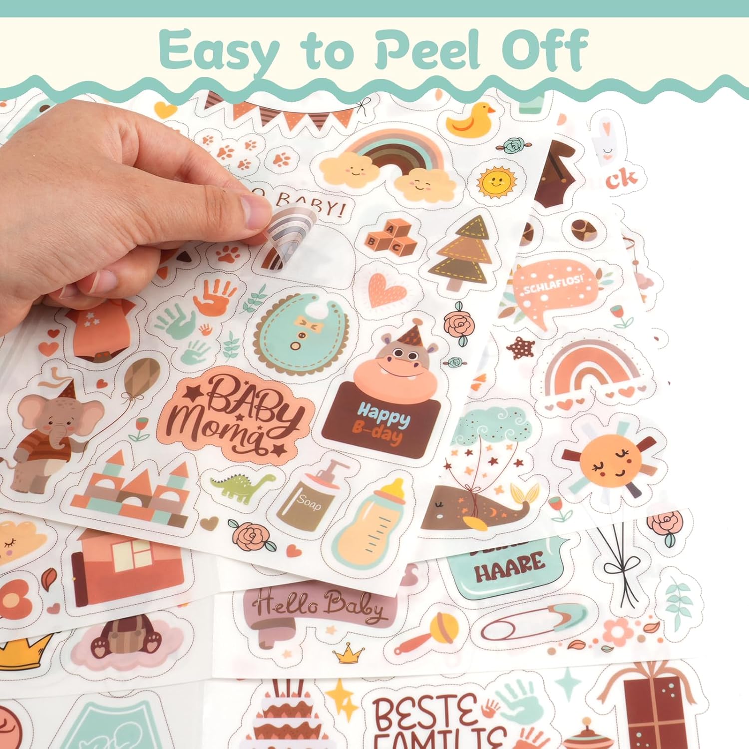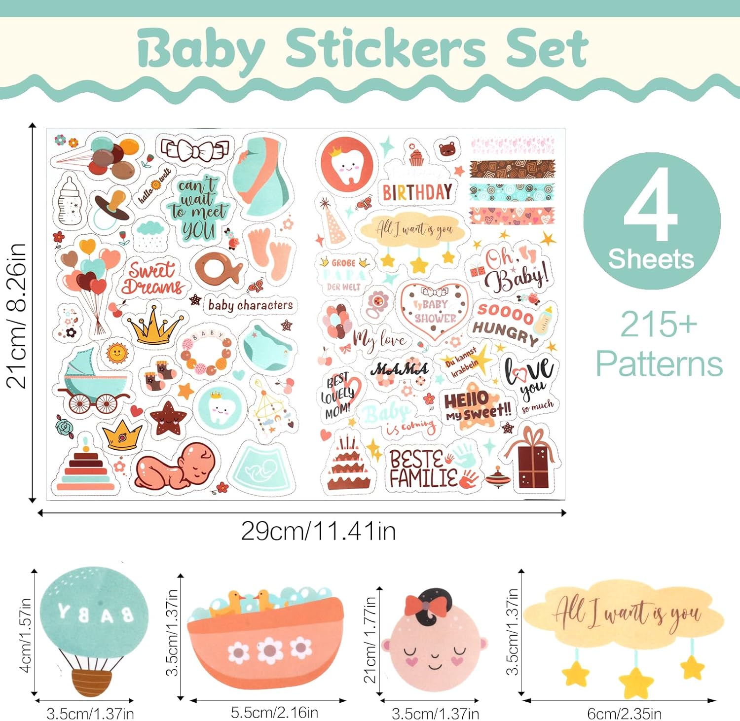 Sticker Babyalbum mit 225+ Motiven - Selbstklebende, Wasserdichte Baby Aufkleber