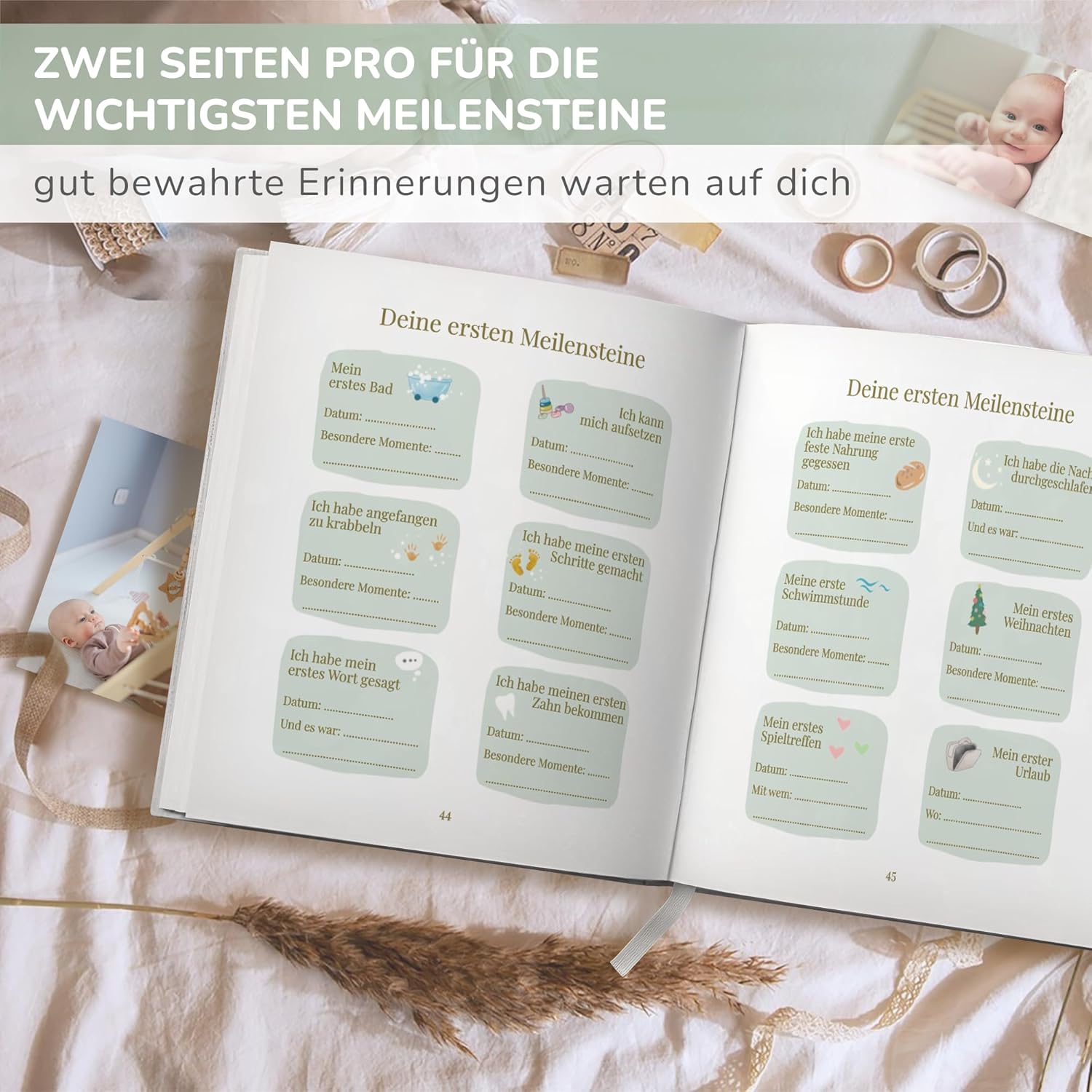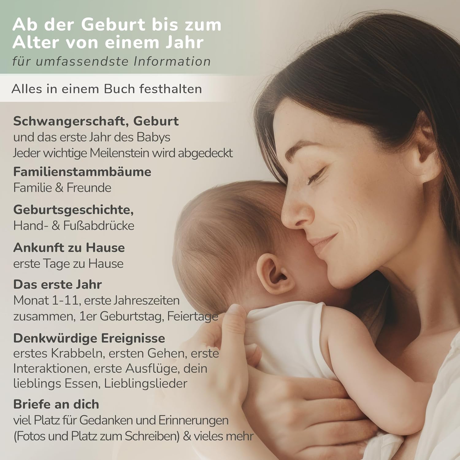 Das Album begleitet Sie und Ihr Baby beginnend mit der Geburt und den ersten Wochen durch das erste Jahr. Es bietet wunderschöne Abschnitte für jeden Monat, einen Stammbaum und kreative Seiten und vieles mehr. Das Babyalbum wurde von Eltern entwickelt und ist geschlechtsneutral gestaltet, um sämtliche wichtigen Etappen und Ereignisse des ersten Jahres für die Ewigkeit zu bewahren.