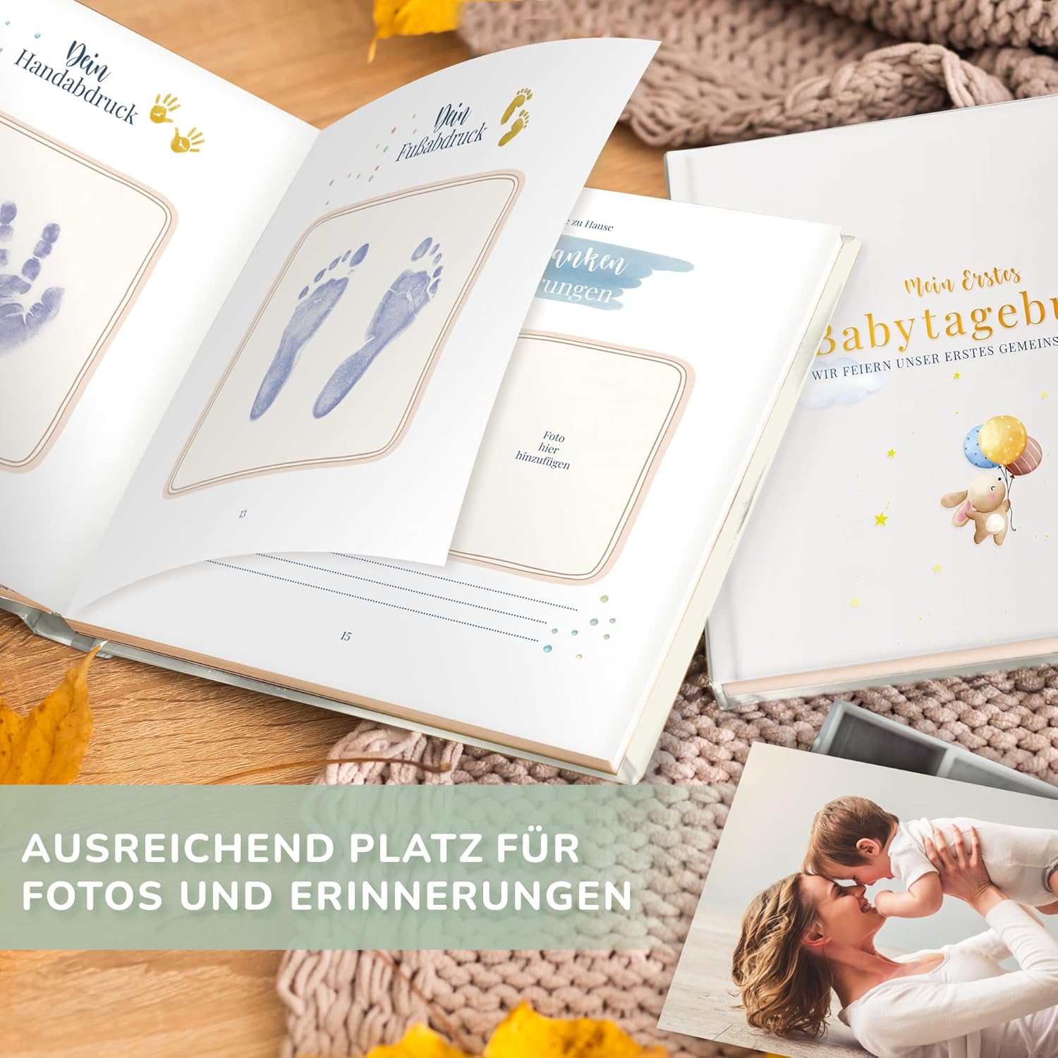 Tiny Trees® Babytagebuch - Erstes Jahr Erinnerungen, 51 Seiten mit Geschenkbox